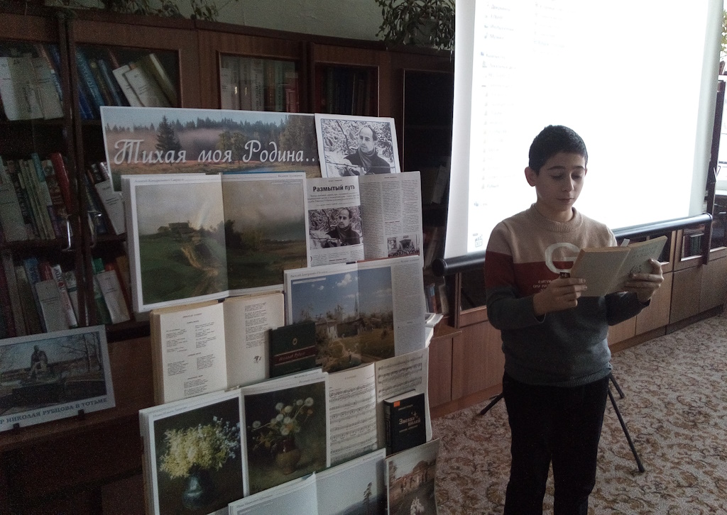 В литературной гостиной «В гостях у писателя» центральной районной межпоселенческой библиотеки состоялся музыкально-поэтический вечер «Воспевающий землю свою». Мероприятие было посвящено 90-летию со дня рождения и 55-летию со дня смерти талантливого русского поэта Николая Рубцова.