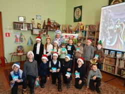 25 декабря, в преддверии Нового года для юных читателей центральной детской межпоселенческой библиотеки прошла литературно-игровая программа «Новогодние истории». В игровую атмосферу праздника второклассники Ельнинской СШ №1 имени М.И. Глинки (классный руководитель Моисеева О.А.) погружались при входе в библиотеку. Каждому из присутствующих был дан элемент маскарадного костюма: светящиеся ушки, рожки или разноцветные новогодние колпаки, что вызывало оживление и веселье и поднимало новогоднее настроение.