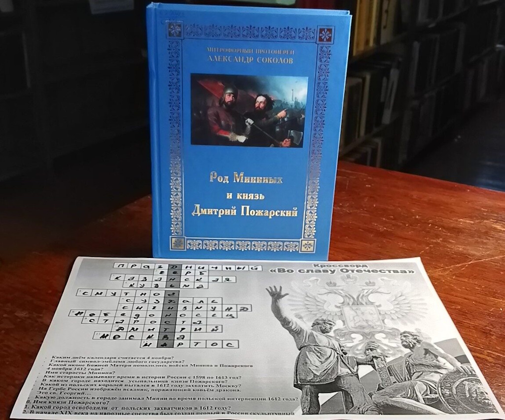 Для мероприятия была оформлена книжная выставка - кроссворд «Во славу Отечества». Гости с удовольствием приняли участие в разгадывании кроссворда, показав хорошие знания русской истории.