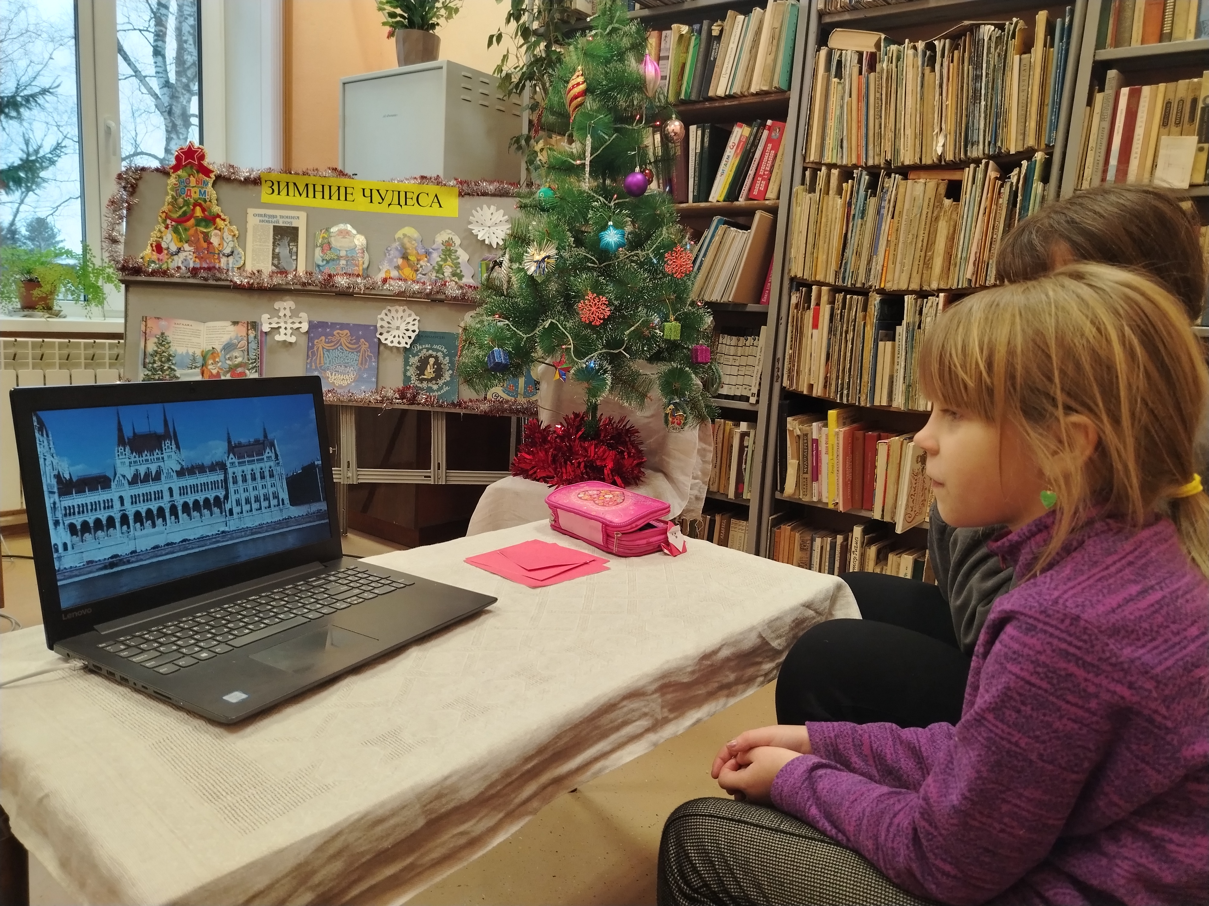 Библиотекарь Юдина А.В. познакомила ребят с историей возникновения самого волшебного праздника, многообразием новогодних традиций и обычаев разных стран: России, Англии, Франции, Японии, Италии, Финляндии и др. Красочная презентация позволила участникам мероприятия совершить виртуальный новогодний круиз.