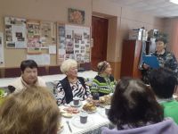 Для членов РО «Всероссийского общества инвалидов» библиотекарем центральной районной межпоселенческой библиотеки Сорокиной Н.И. был проведён час общения «Возраст мудрости, тепла и доброты». Участники мероприятия услышали много добрых слов и пожеланий в свой адрес, узнали историю происхождения Международного дня пожилого человека, услышали истории жизни людей «Золотого возраста» удивительной судьбы, активно участвовали в интересных конкурсах, викторинах, вспоминали пословицы и поговорки, с удовольствием пели песни и частушки.