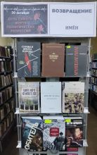 На абонементе в память о жертвах политических репрессий оформлена книжная выставка «Возвращение имен», из представленных книг можно узнать сведения о тяжелом и суровом времени, о годах сталинского культа, о необыкновенной стойкости и преданности своей стране людей, прошедших через репрессии.