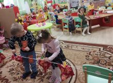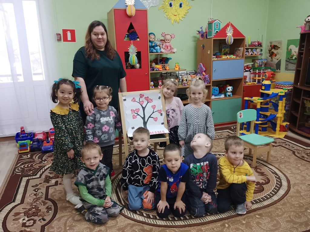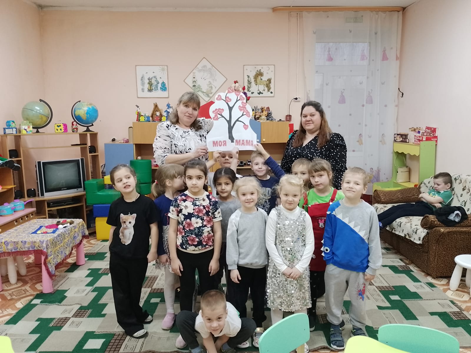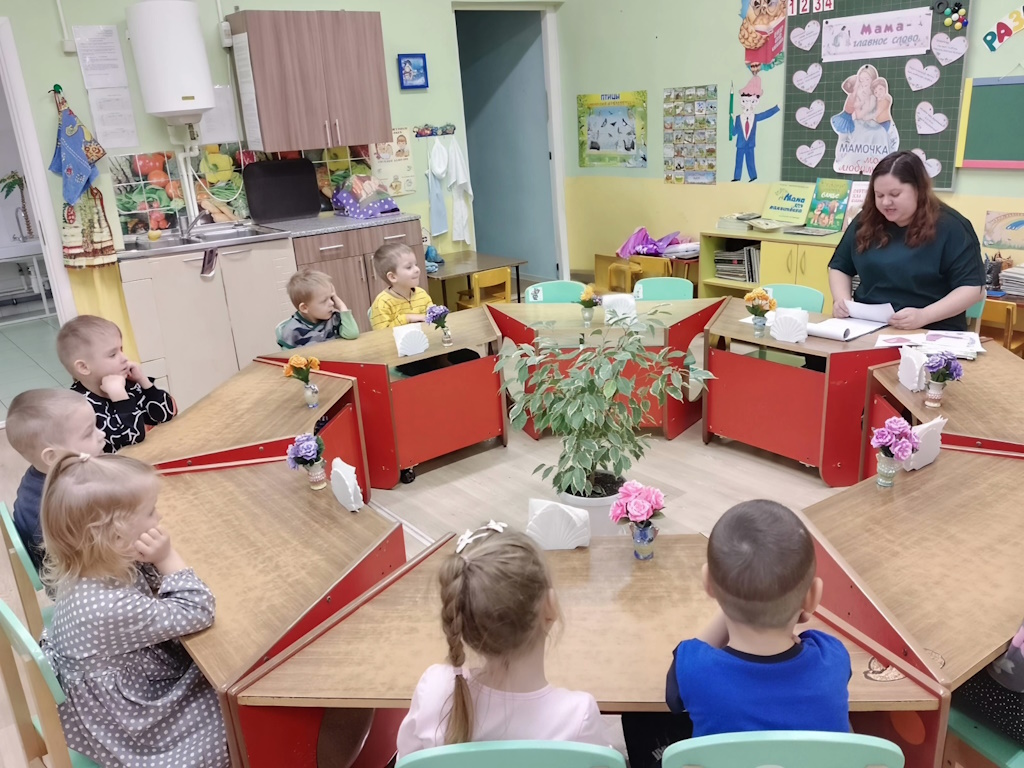Весело и дружно отгадывали загадки, выполняли задания в игре «Мамины помощники», развешивали белье, «варили» суп и компот, собирали ромашку с добрыми словами для мам и дерево комплиментов, рисовали портрет мамы.