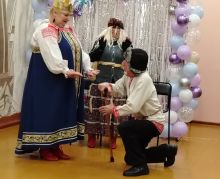 На мероприятие был приглашён фольклорно-этнографический ансамбль «Реченька», участники которого, переодевшись ряжеными, показали зрителям небольшое театрализованное представление.