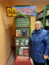 При входе в зал была оформлена книжная выставка, посвящённая Дню Победы, библиотекарь Гришутина Г.Л. знакомила гостей с выставкой.