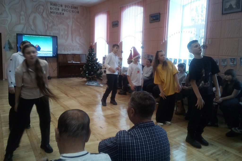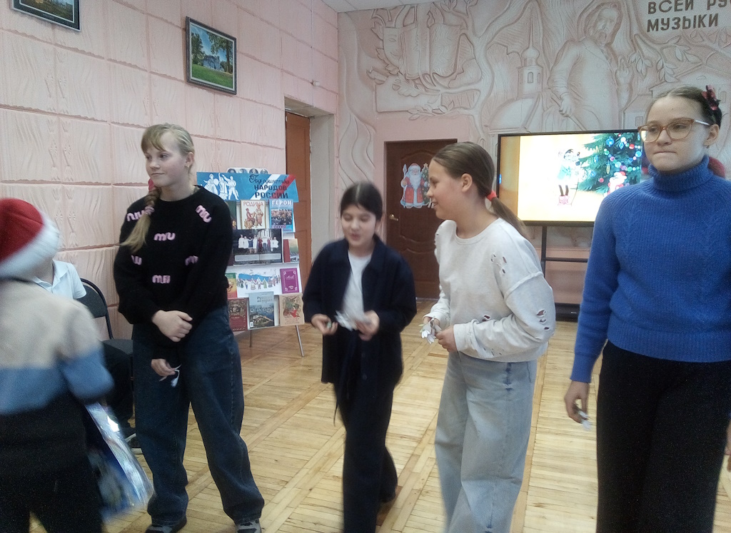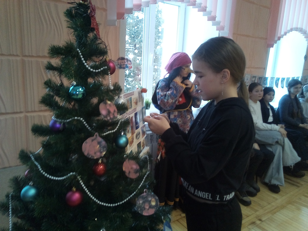 Участники мероприятия познакомились с традициями встречи Нового года у разных народов России. Помогли совершить путешествие сказочные персонажи. Мудрый Звездочет делился интересной информацией, прелестный маленький Новый год зачитывал поздравления и дарил сладости, Синий Иней описал зимнюю природу, строптивая Баба Яга увлеклась происходящим и помогала проводить игры и викторины.