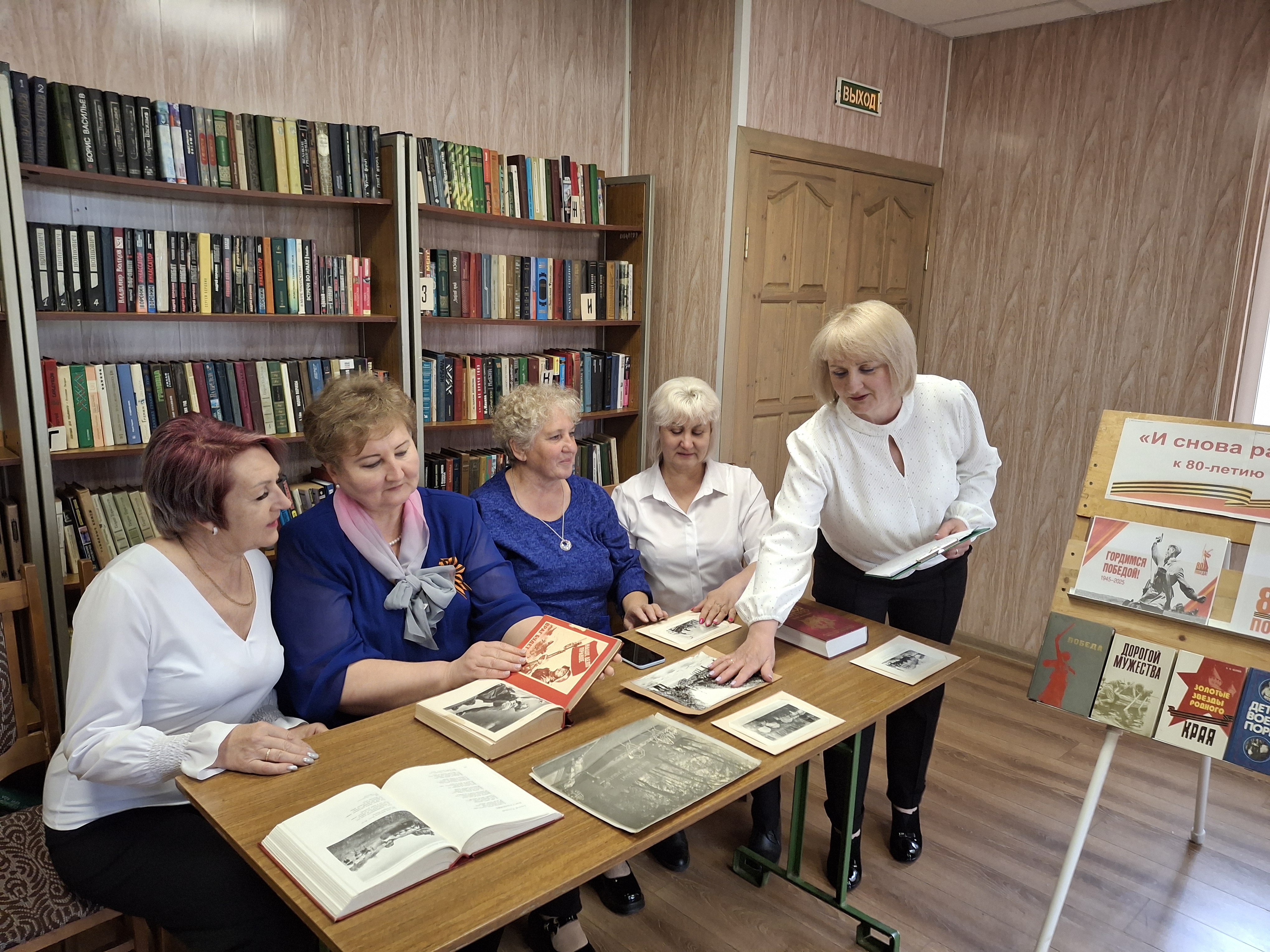 После митинга в библиотеке состоялся разговор у книжной выставки «И снова ратной славы дата», посвящённой 80-летию Победы. Библиотекарь провела библиографический обзор, познакомила с представленной литературой. Присутствующие рассматривали иллюстрации и фотографии. В годы войны не было ни одного дня, который можно было бы вычеркнуть из народной памяти. Эта тема всегда привлекает внимание пользователей.