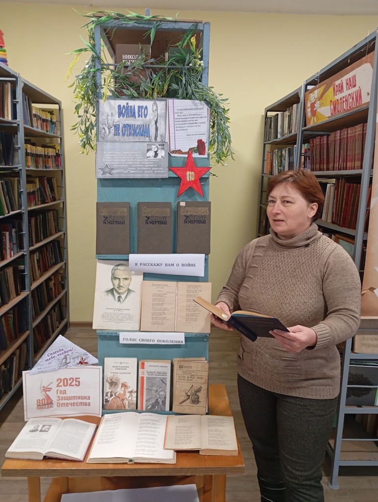 В Теренинской сельской библиотеке-филиале в рамках Года защитника Отечества и 80-летия Победы проведён вечер-портрет «Константин Симонов - человек своего поколения». Из рассказа библиотекаря читатели узнали о литературном наследии писателя, открывая для себя что-то новое в его творчестве. С удовольствием посмотрели фрагмент из кинофильма «Жди меня». В исполнении гостей вечера проникновенно и эмоционально прозвучали стихи поэта «Майор привез мальчишку на лафете», «Смерть друга», «Если дорог тебе твой дом».